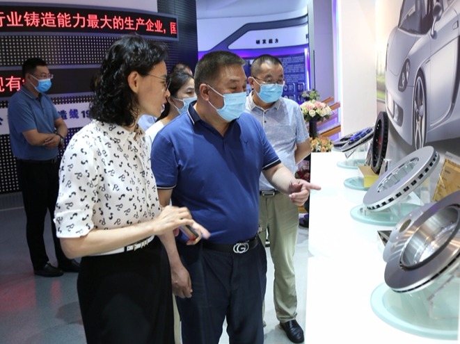 俞剛處長(zhǎng)一行在張海燕董事長(zhǎng)等領(lǐng)導(dǎo)的陪同下,先后實(shí)地參觀了公司產(chǎn)品研發(fā)展示中心、國(guó)家級(jí)檢測(cè)中心和智能化鑄造車(chē)間。